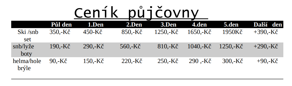 - V areálu je malá půjčovna lyžařského vybavení. Pokud něco ze své výbavy zapomenete, dá se půjčit.